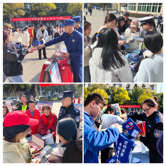 活动特邀九江市濂溪区消防救援大队、濂溪区十里派出所、濂溪区禁毒办、濂溪区国保大队、濂溪区公安分局反诈中队及九江市交警支队第三大队十里中队等驻地单位代表共同参与,全校近500名师生代表积极响应,携手共筑校园安全防线。